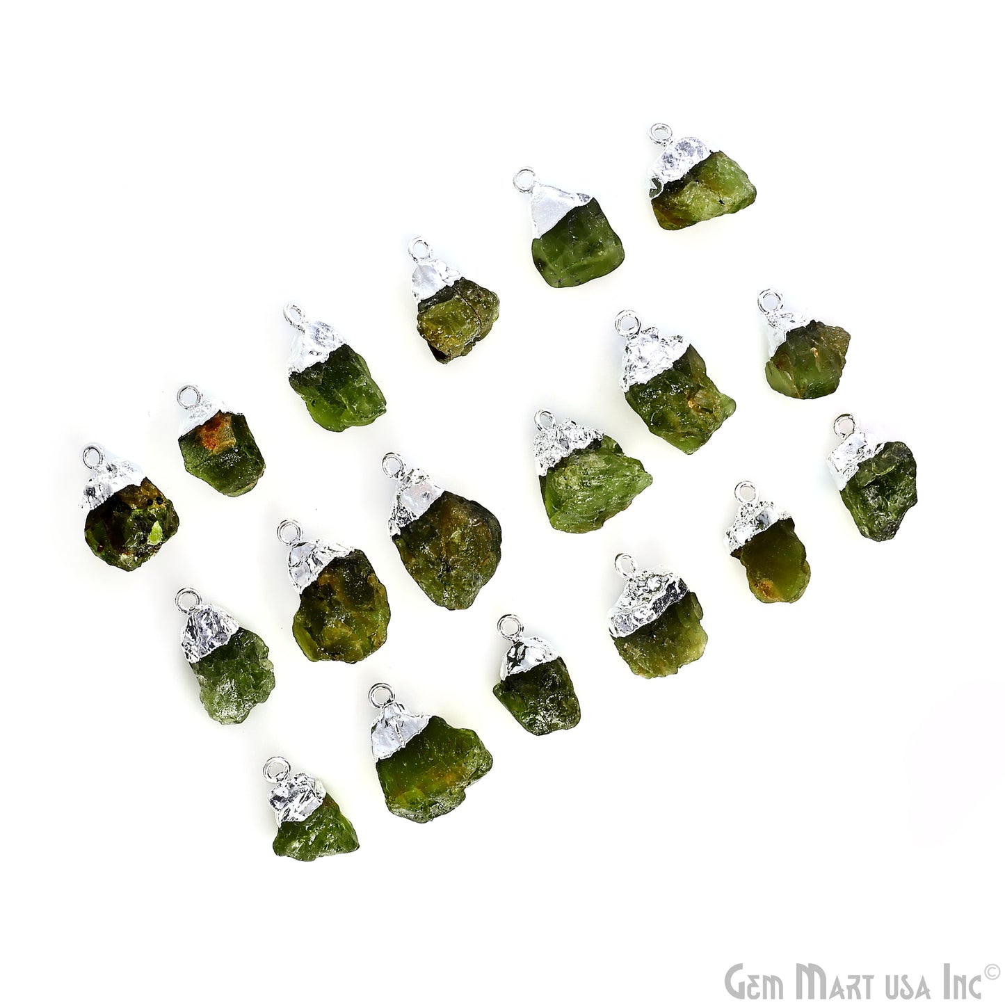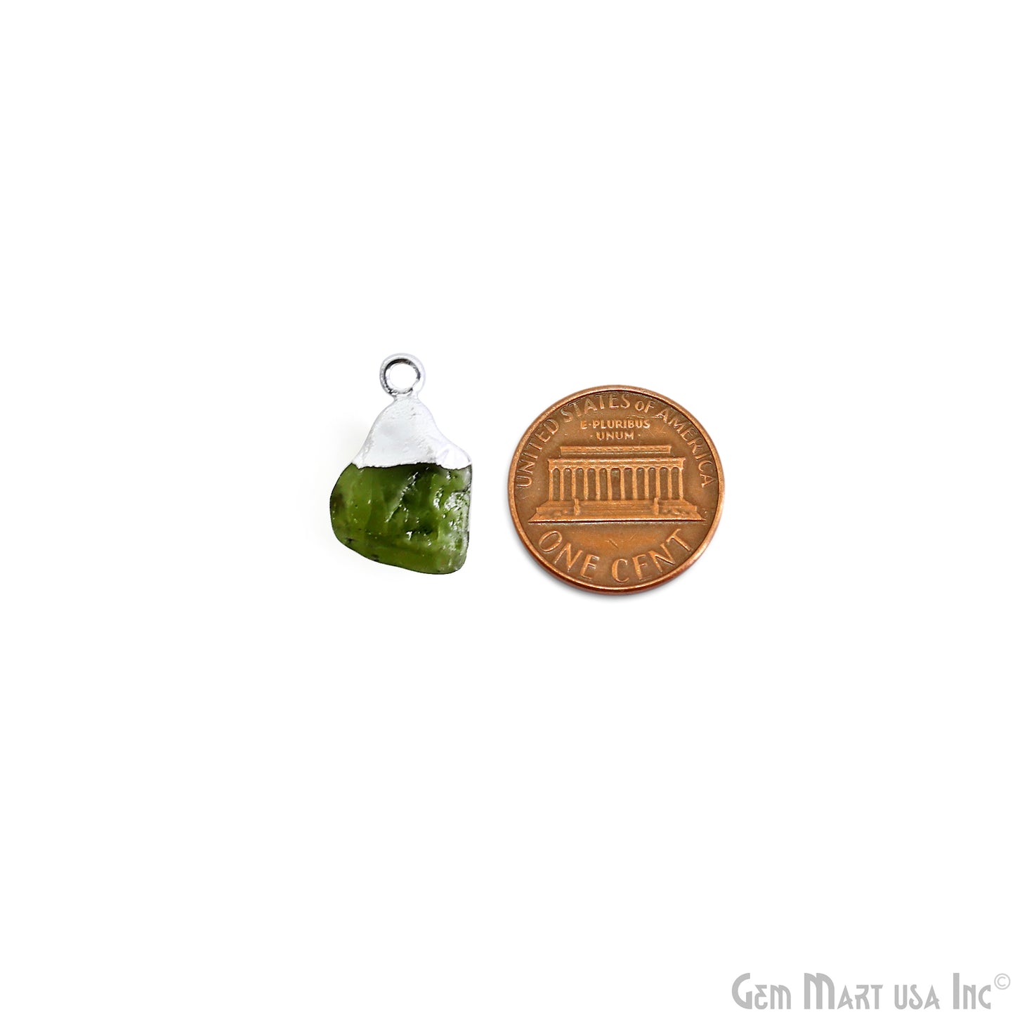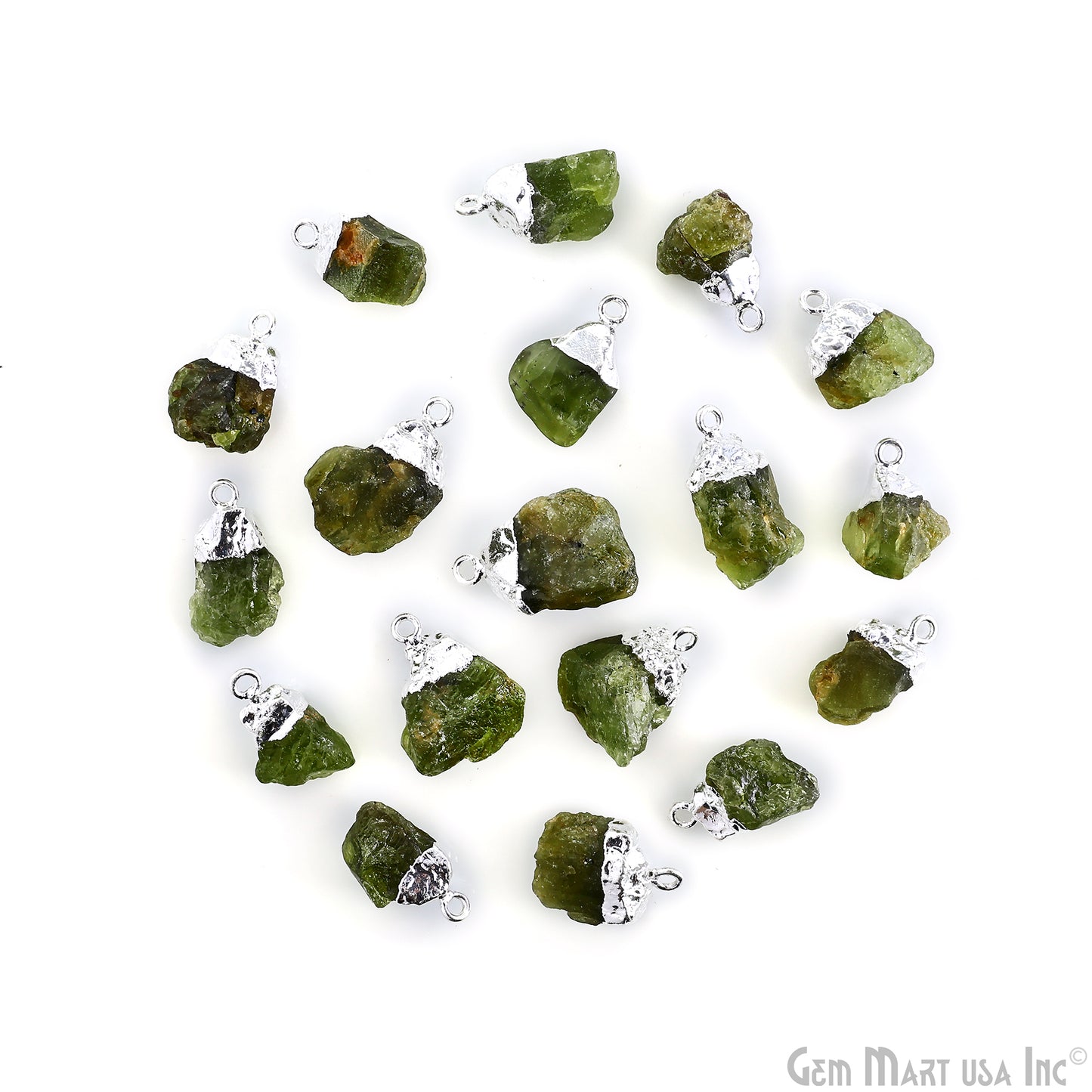Rough Peridot Gemstone 21x14mm Organic Silver Edged Connector