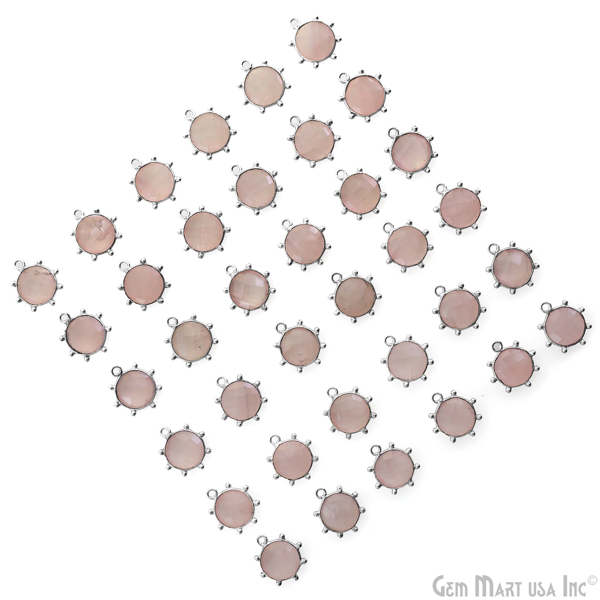 Add elegance to your designs with our bezel silver-plated round shape gemstone connector, featuring a single bail for easy attachment. Available in various gemstone variations to suit your style.