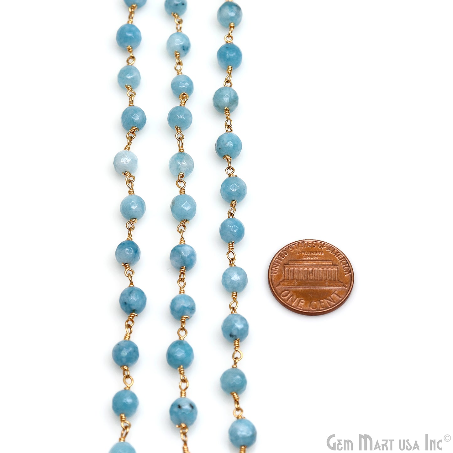 Shaded Blue Jade Faceted Beads 6mm Gold Plated Gemstone Rosary Chain