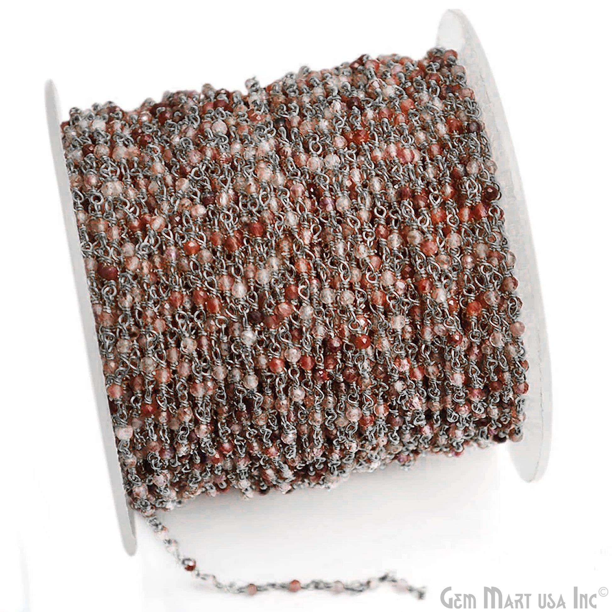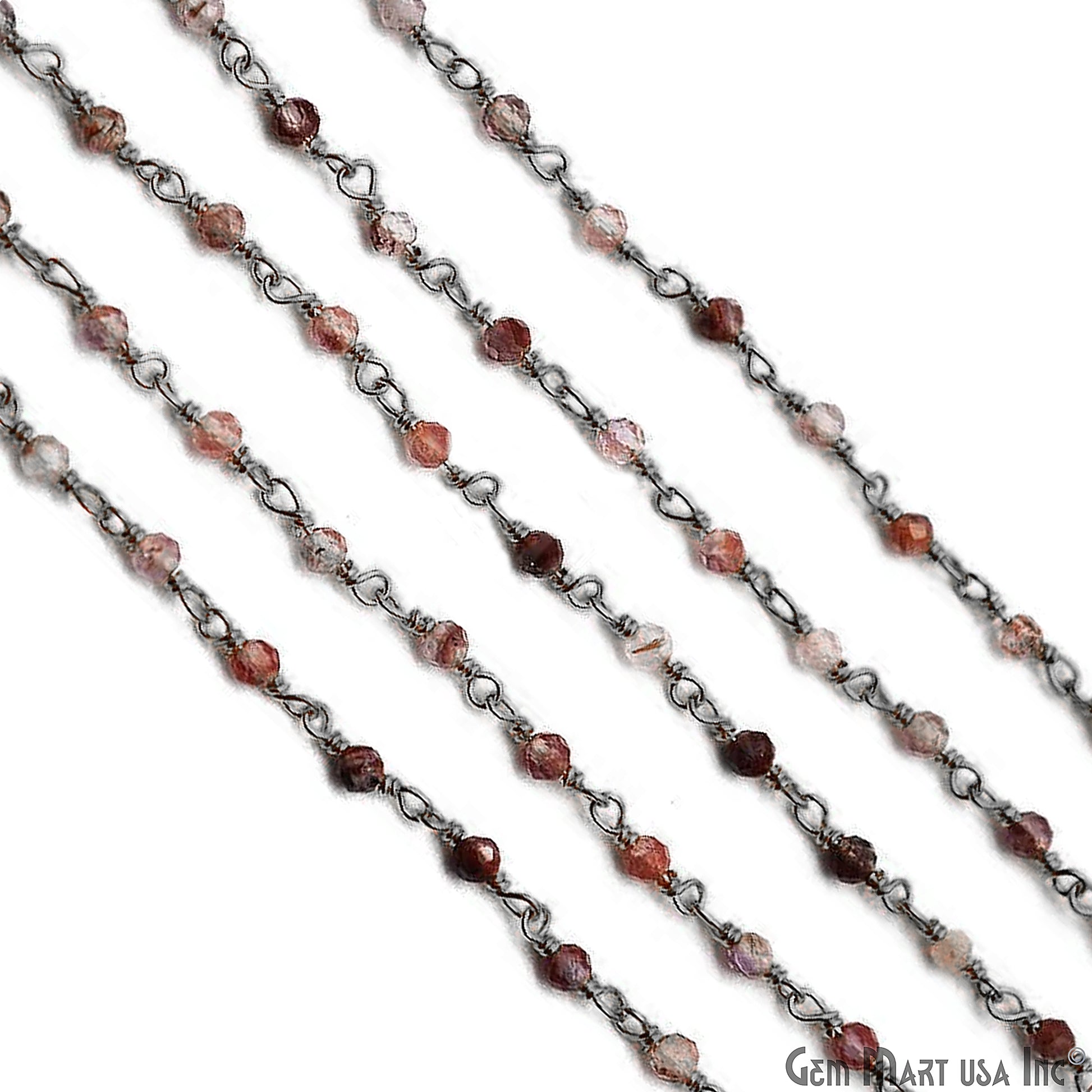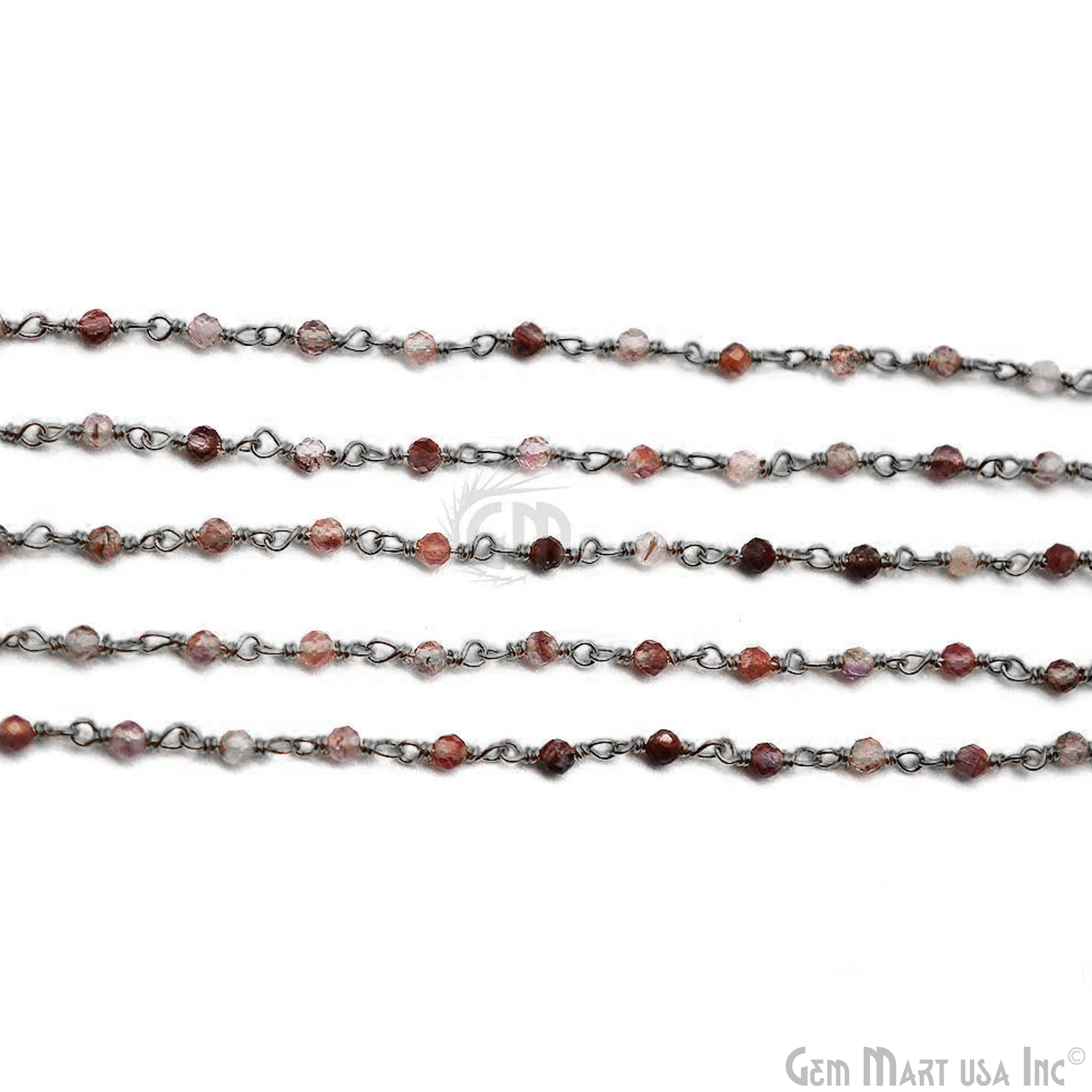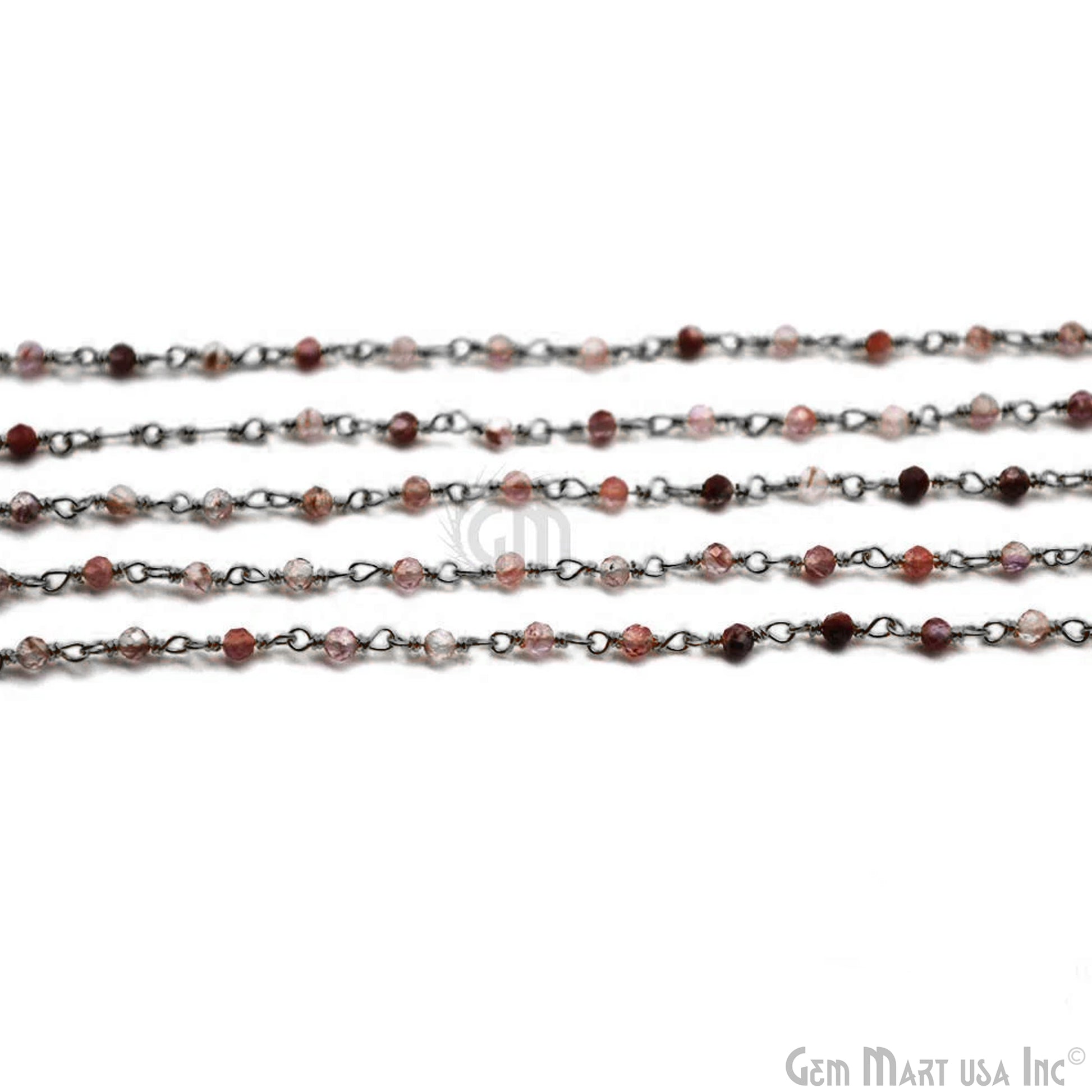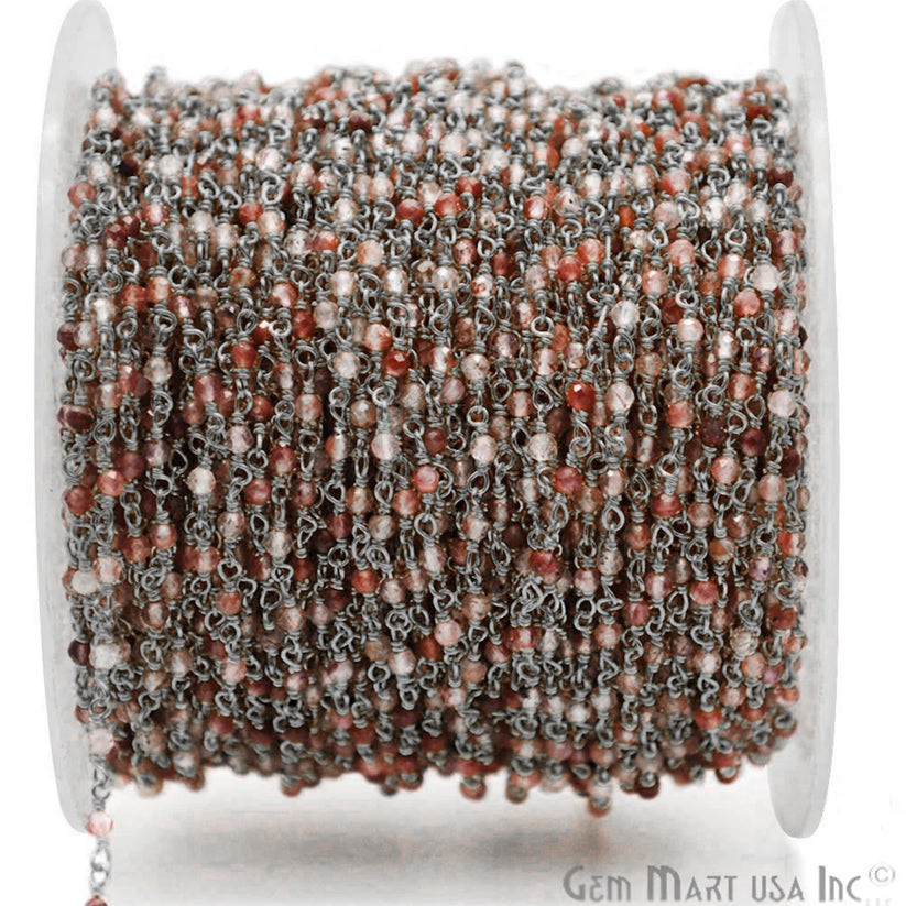 Shaded Strawberry Quartz Black Plated Wire Wrapped Gemstone Beads Rosary Chain