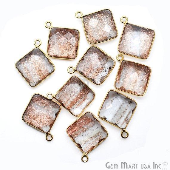 Square 12mm Single Bail Gold Bezel Gemstone Connector