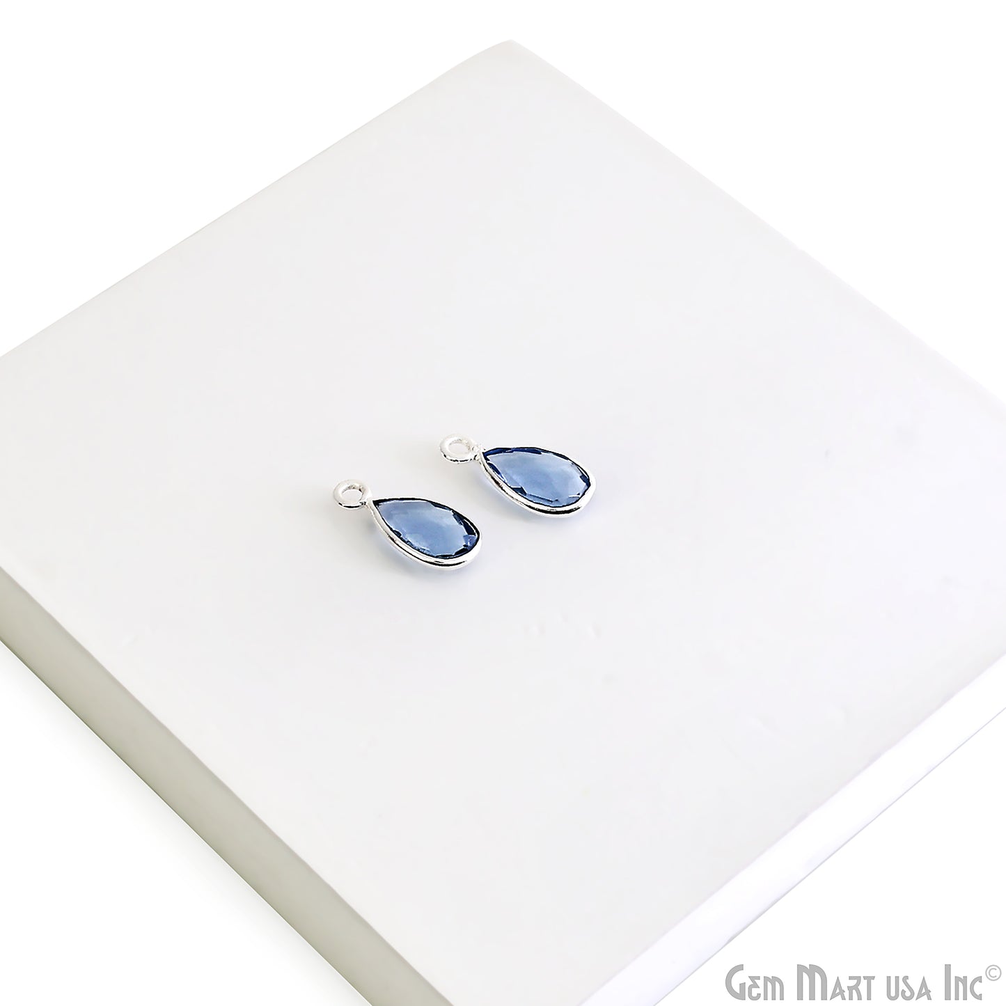 Tanzanite Pears 8x5mm Single Bail Silver Plated Bezel Gemstone Connector