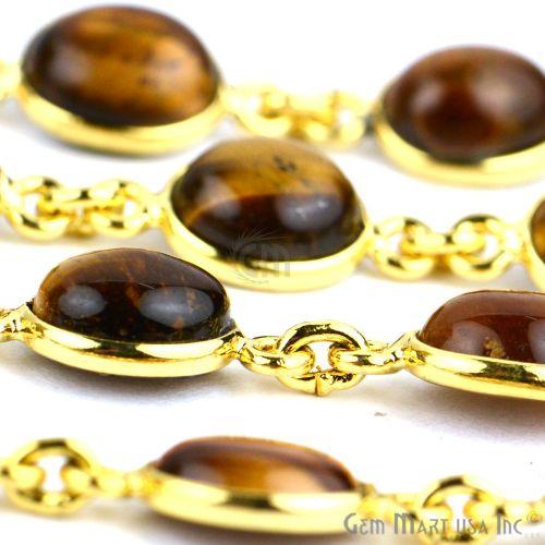 Tiger Eye Oval 8x10mm Gold Plated Bezel Continuous Connector Chain