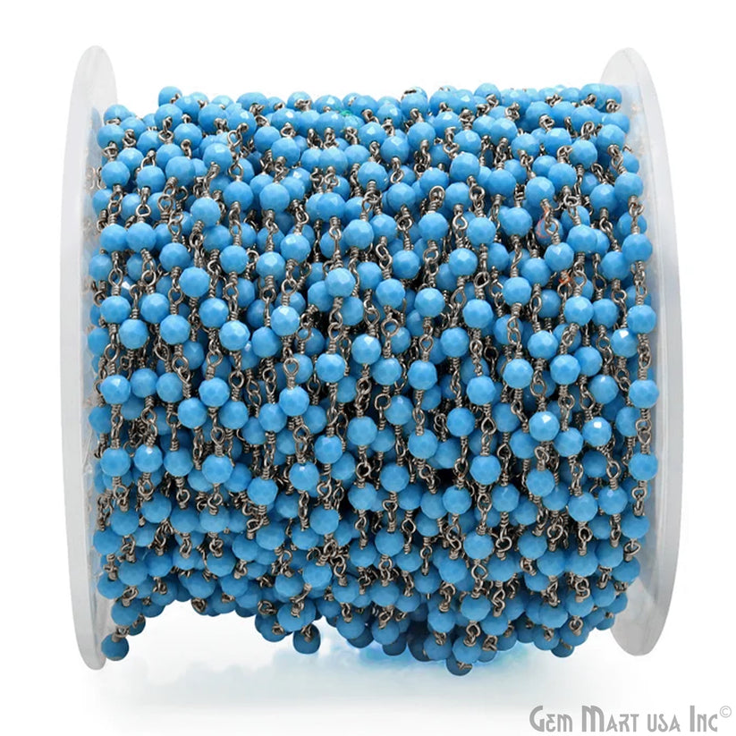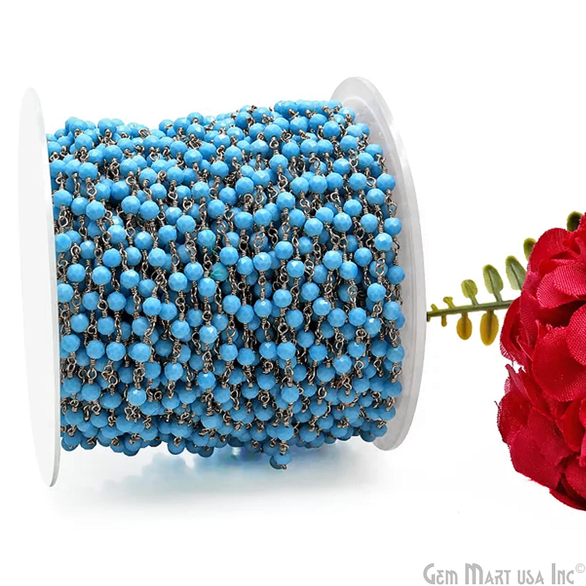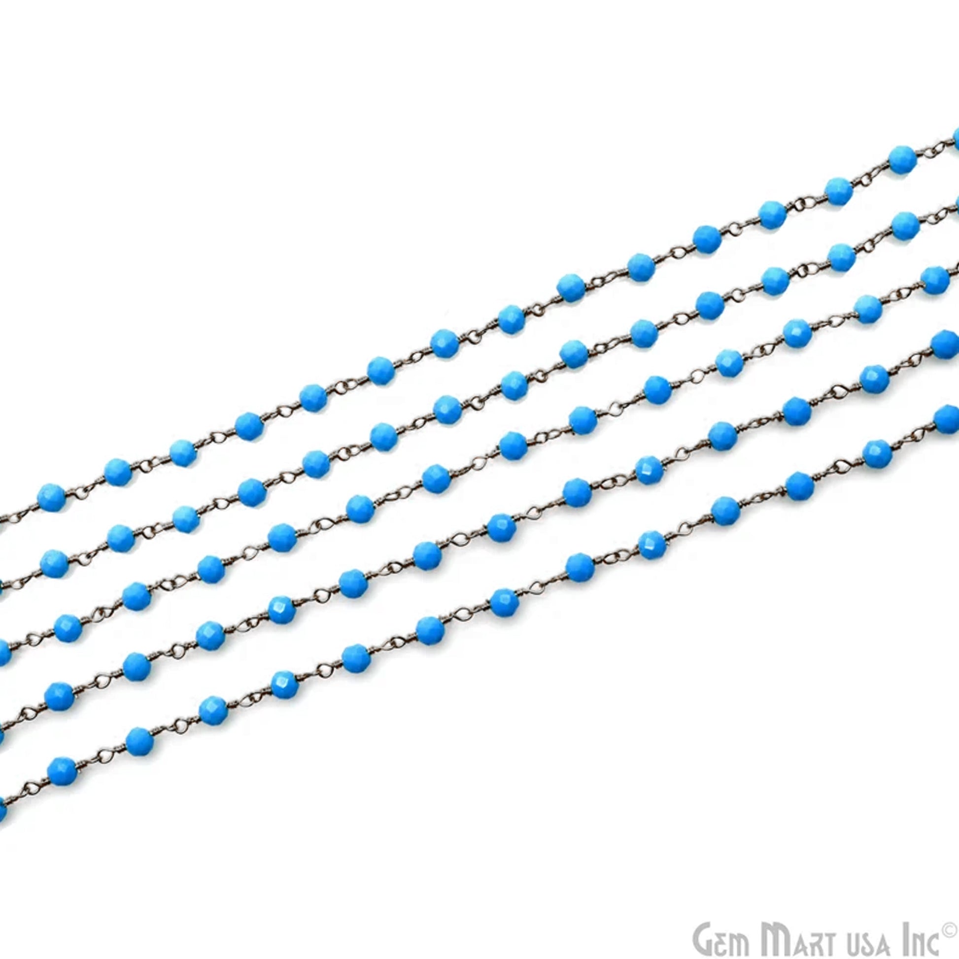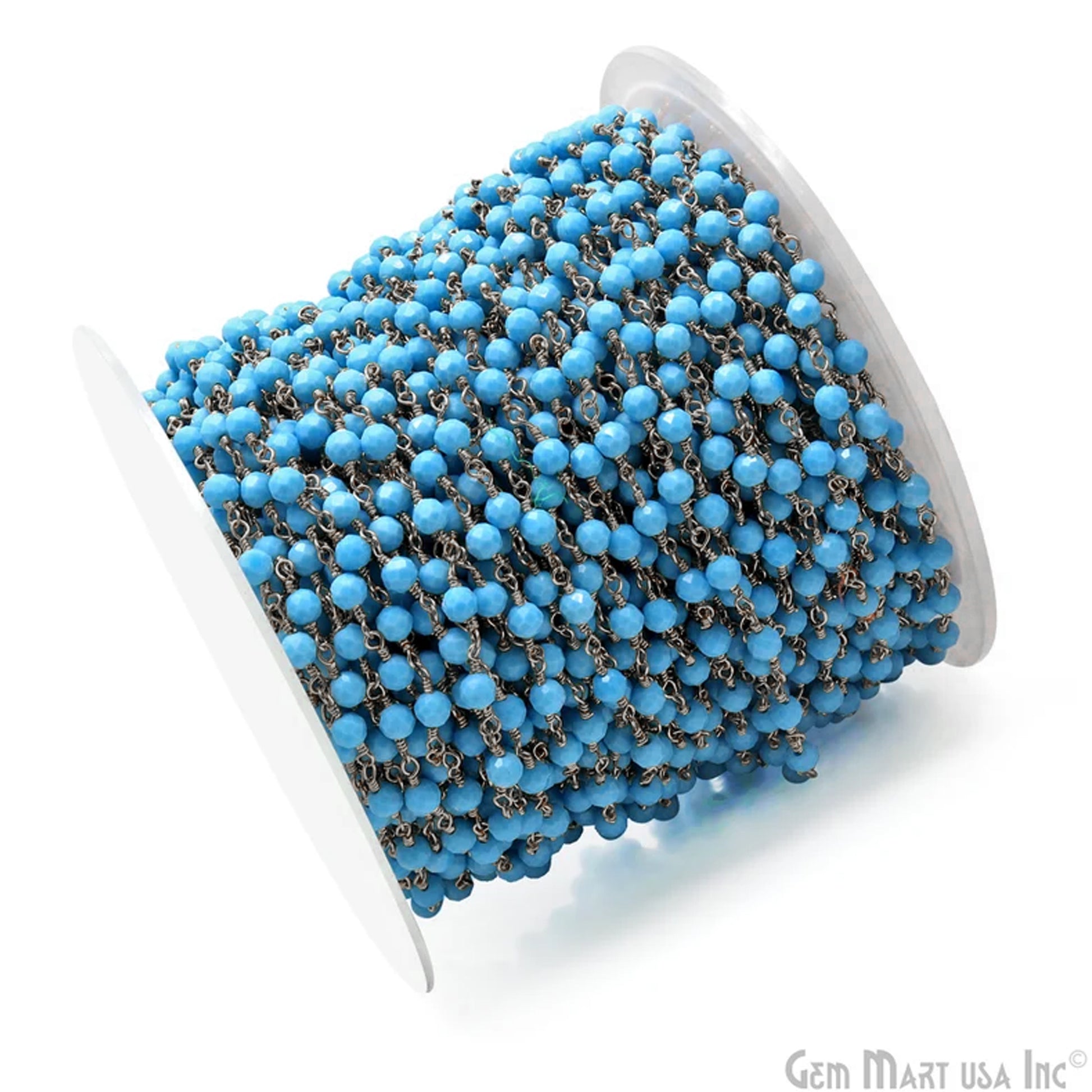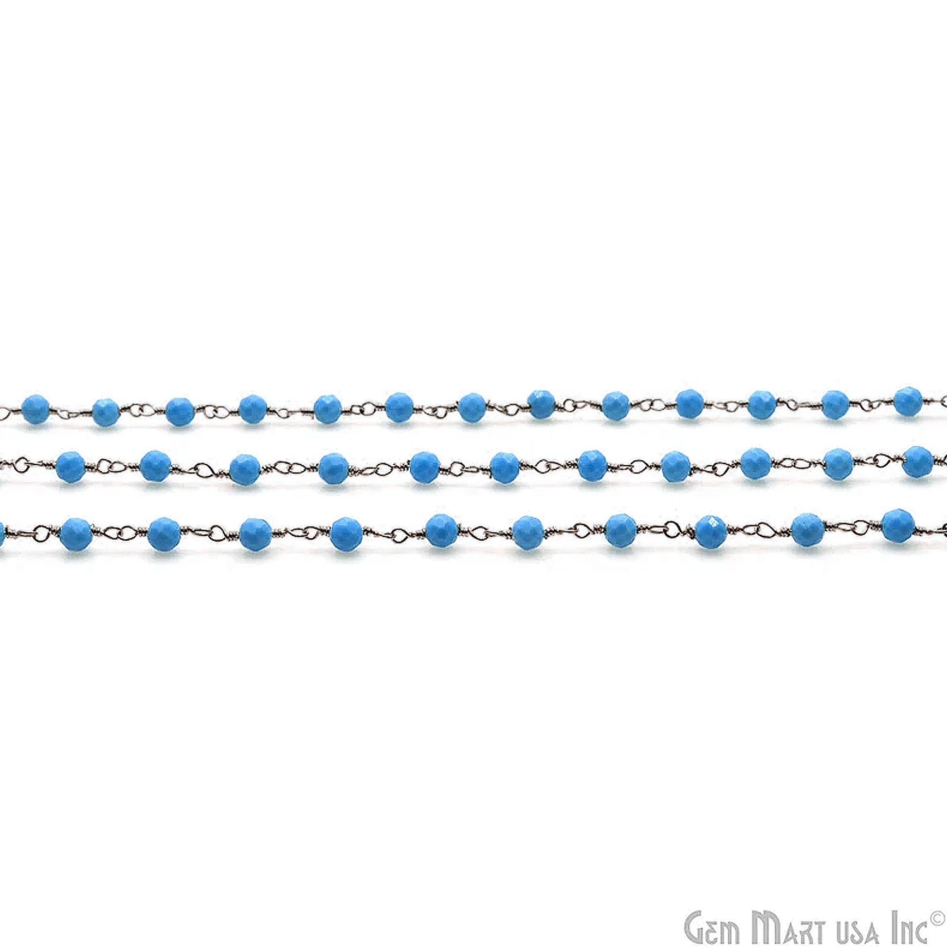 Turquoise Black Plated Wire Wrapped Gemstone Beads Rosary Chain