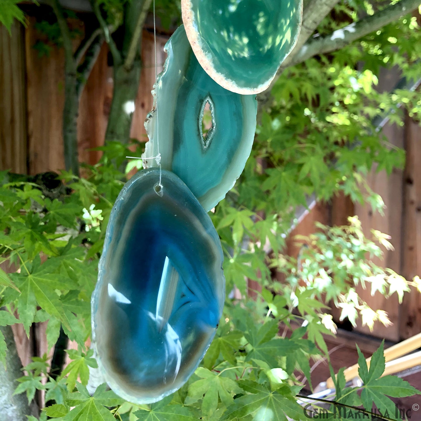 Hang these soothing agate slice wind chimes for a unique touch to your outdoor garden or patio. The natural agate reflects sunlight to create a dazzling display of color.