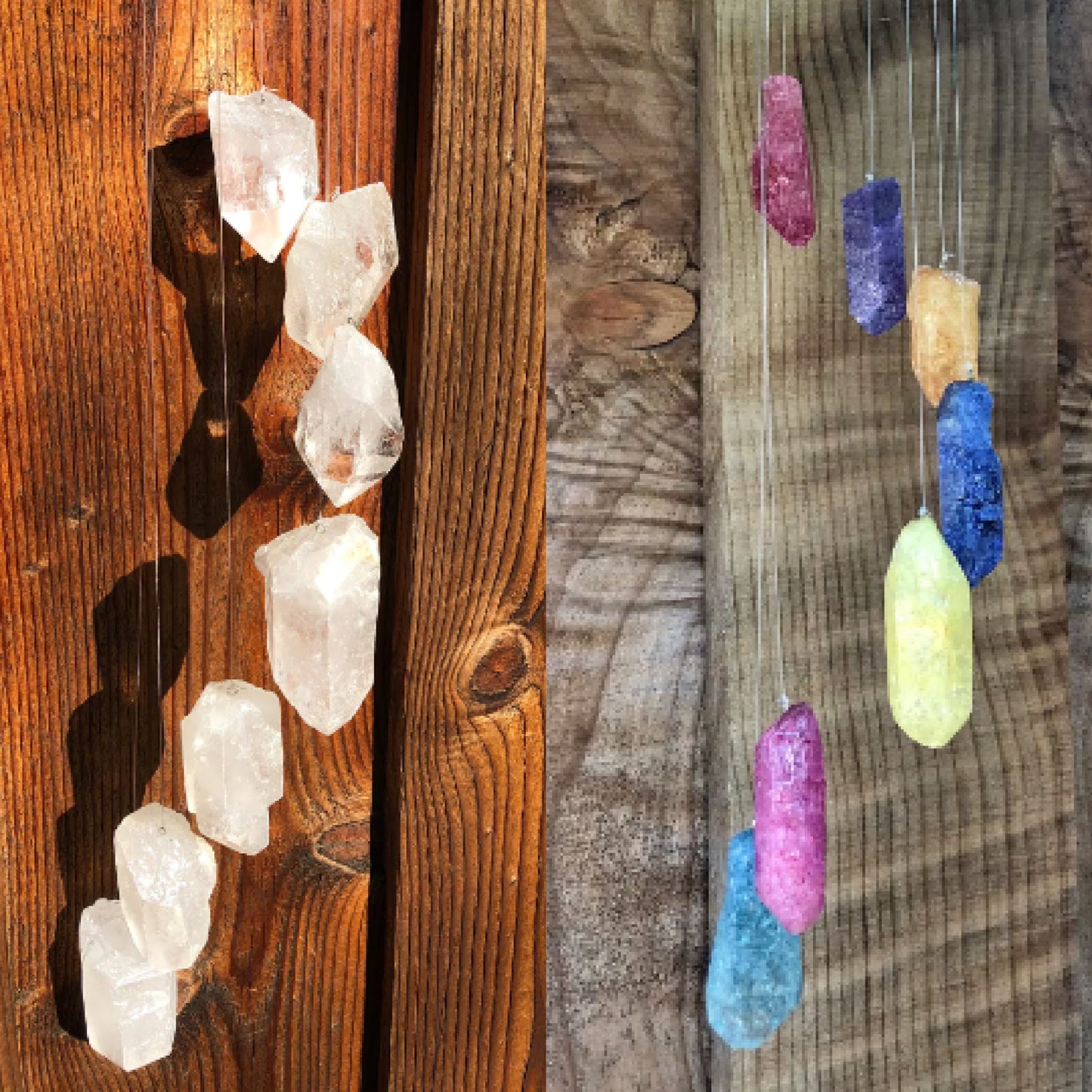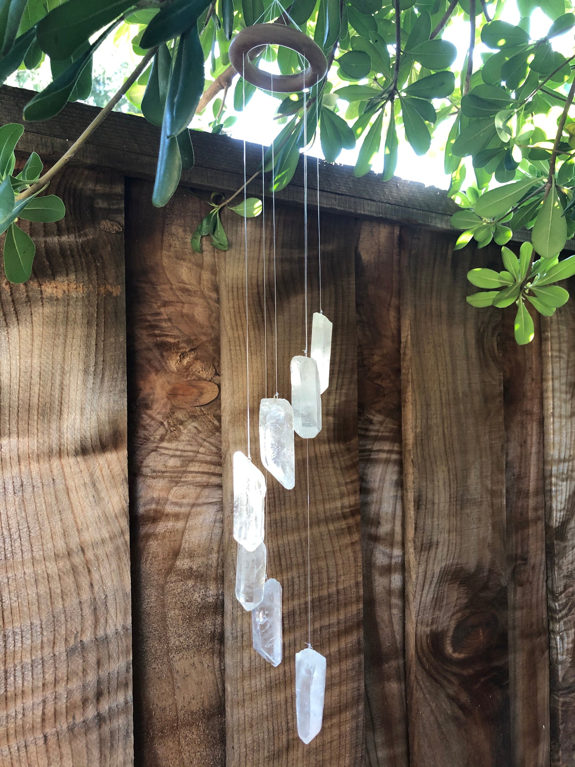 Hang these soothing crystal quartz wind chimes for a unique touch to your outdoor garden or patio. The natural quartz reflects sunlight to create a dazzling display of color.