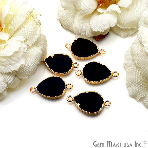 Pear 12x16mm Zig Zag Double Bail Gold Edged Gemstone Connector